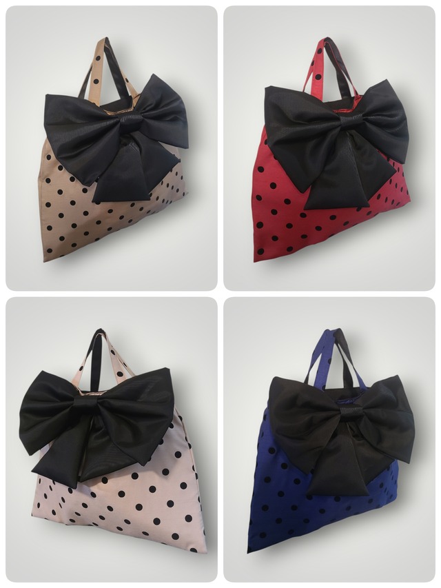予約☆CooMiC☆台形ギャザーリボントート☆ドット