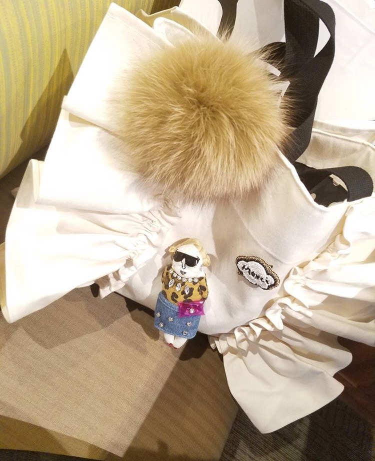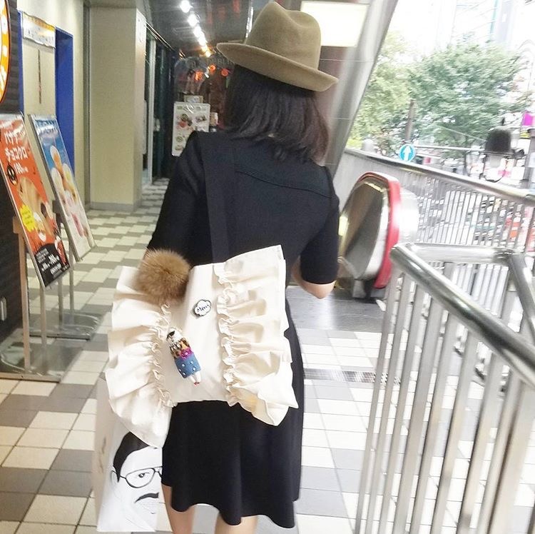 こちらのフリフリトートは大荷物を入れて肩掛けしても紐の幅や長さがちょうどいいので