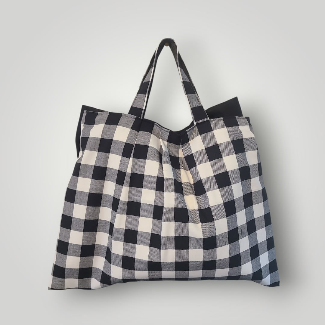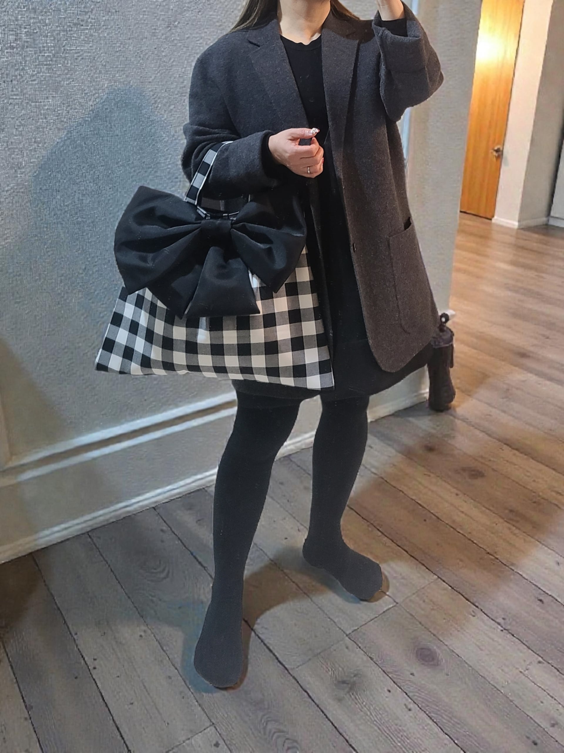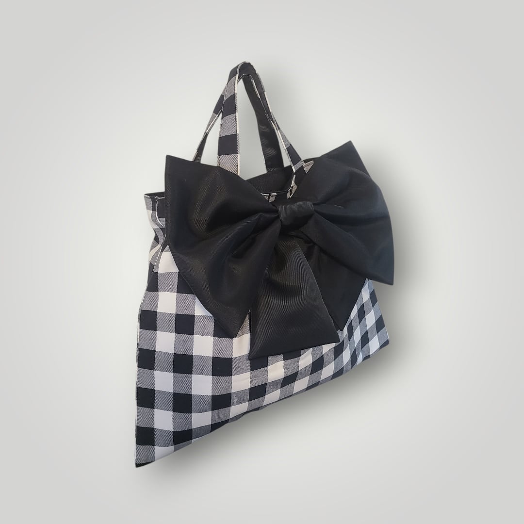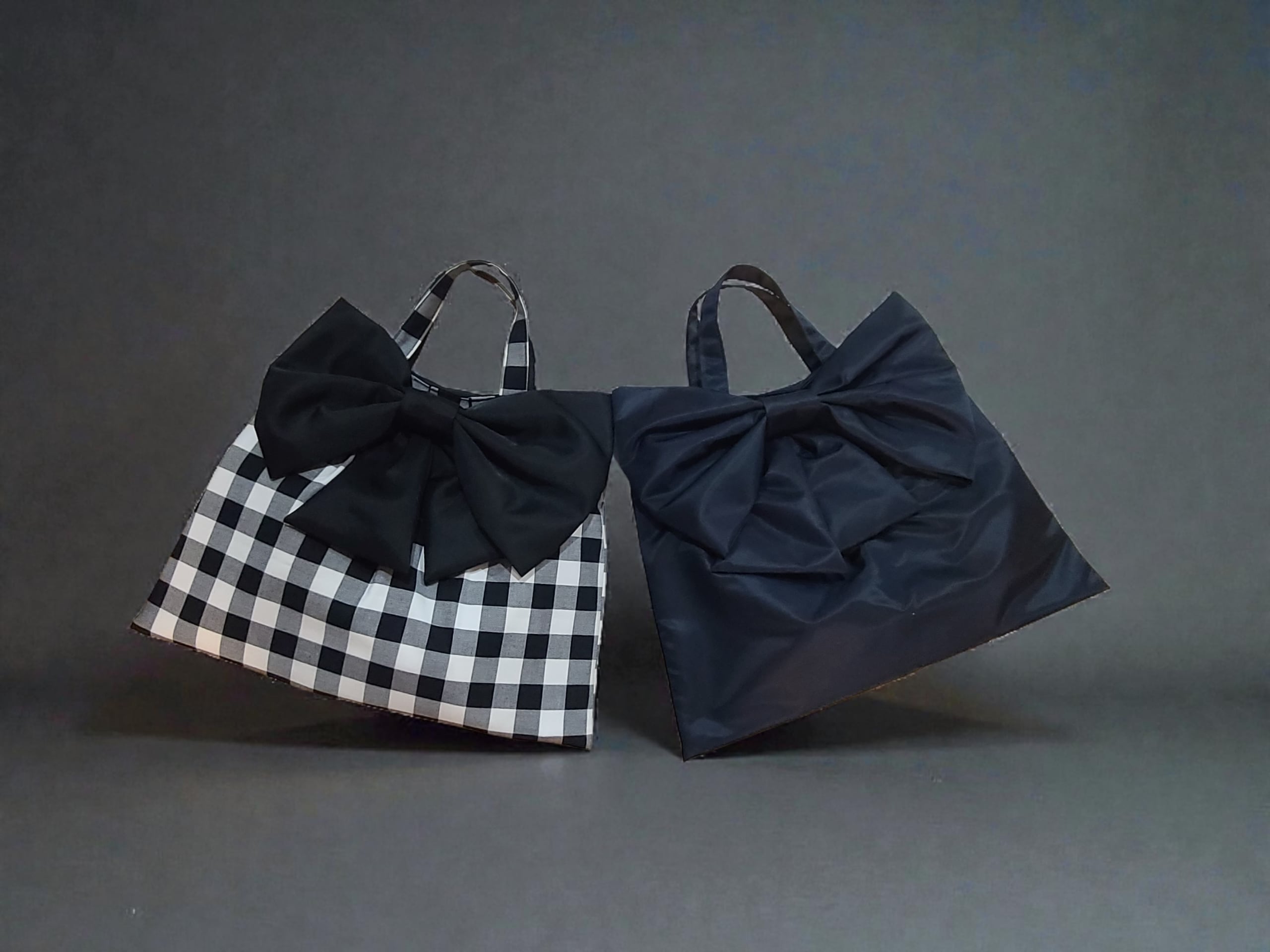 予約☆CooMiC☆台形ギャザーリボントート☆白黒チェック