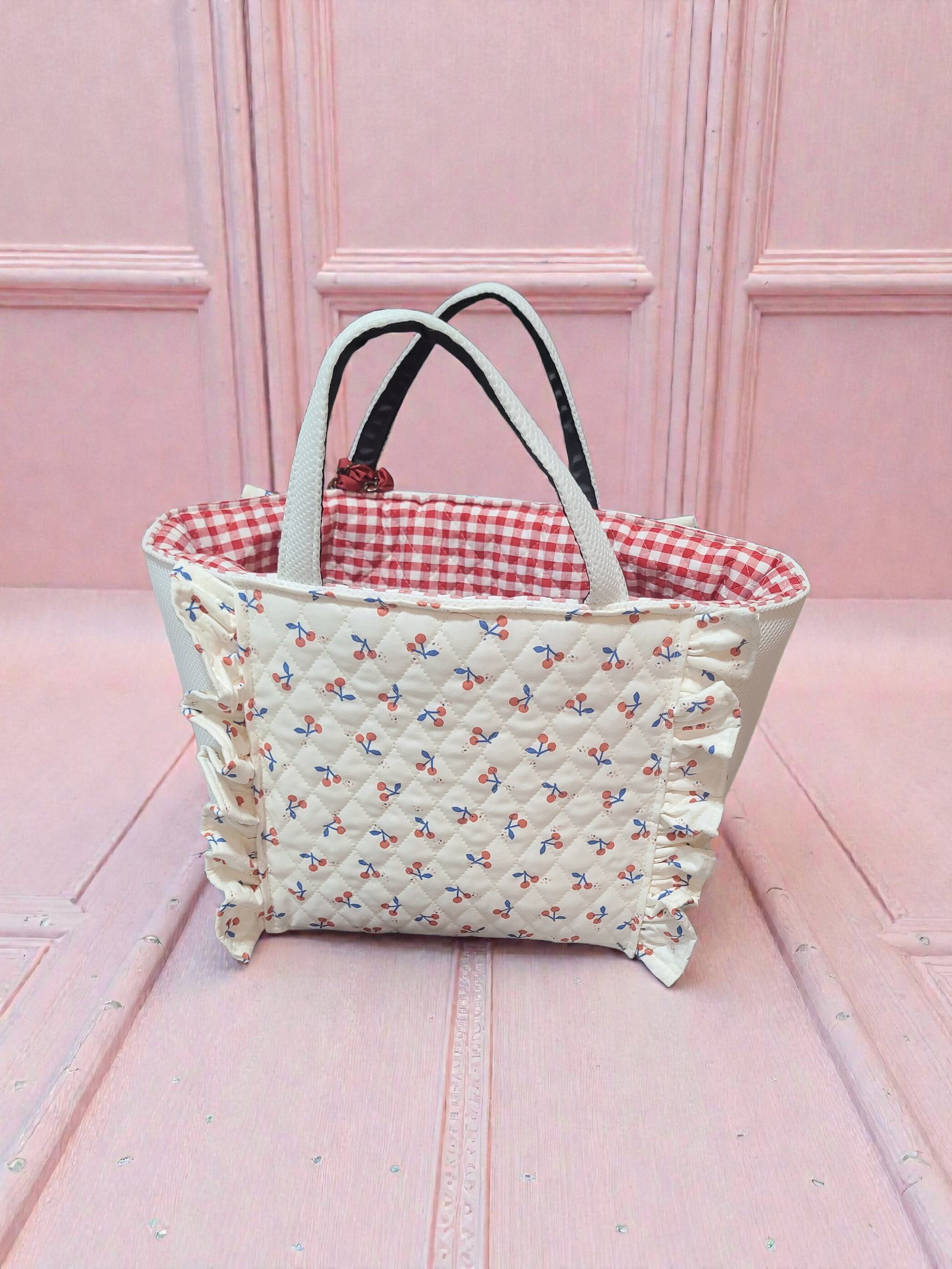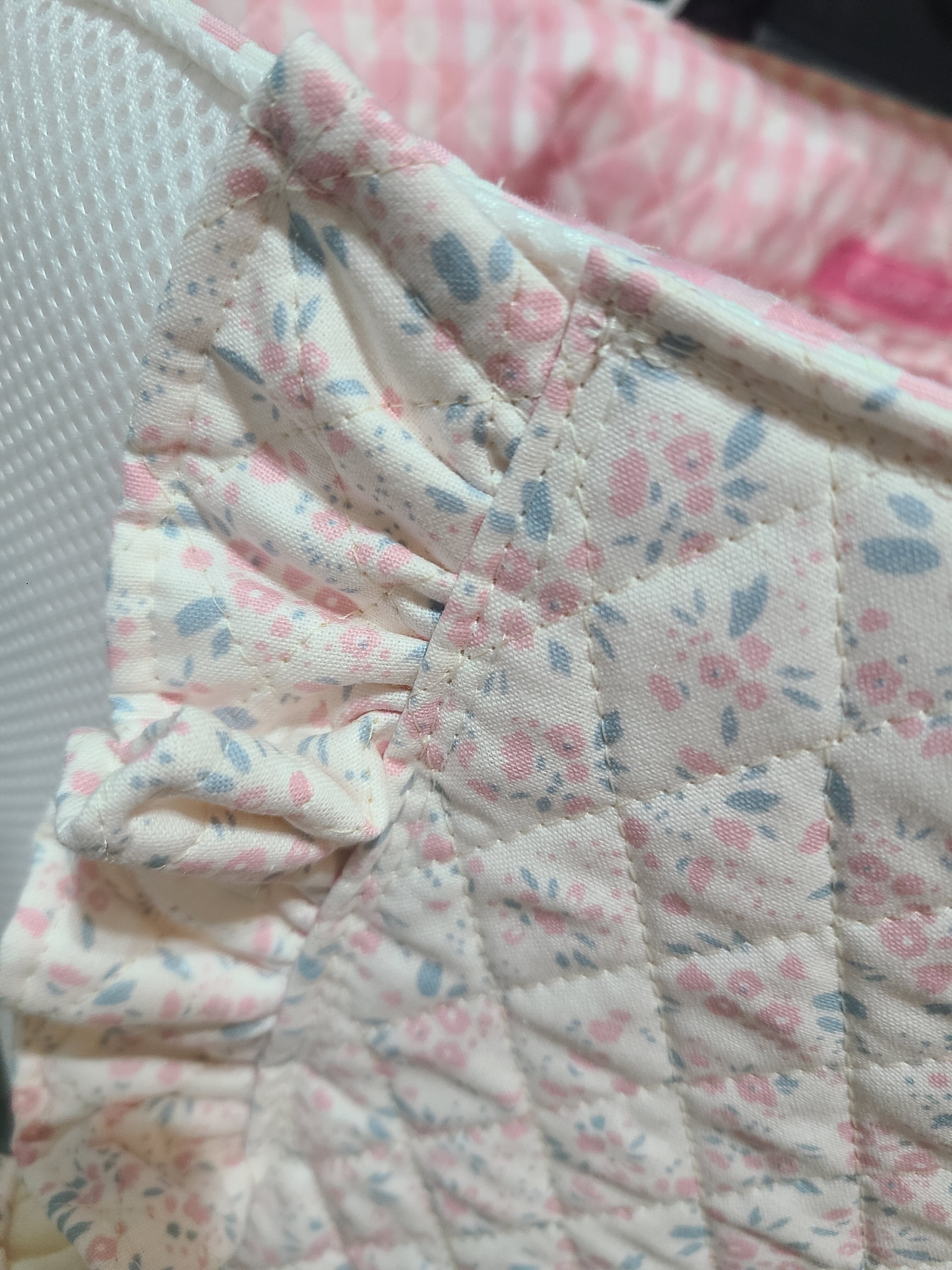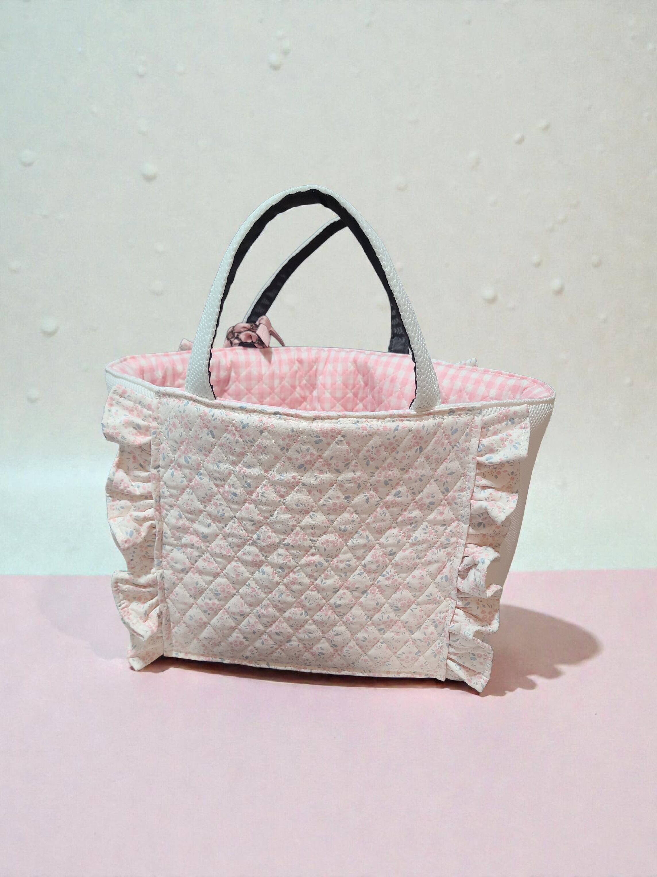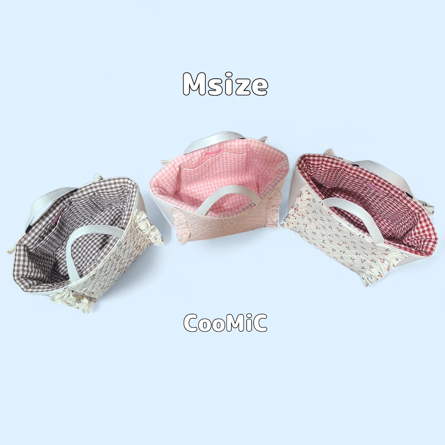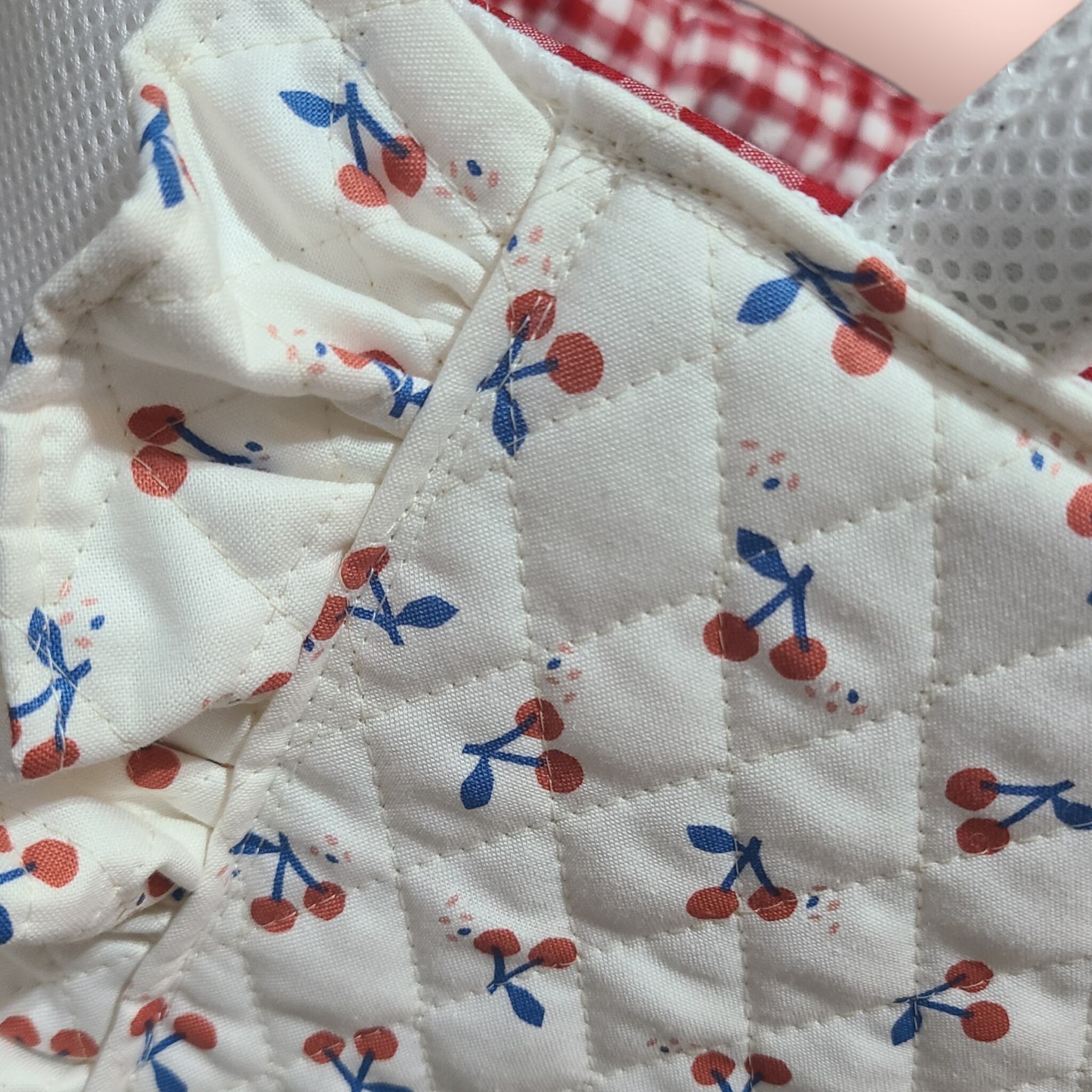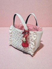 ・真ん中、フリル:ベビーピンク、レッド、ブラウン系柄