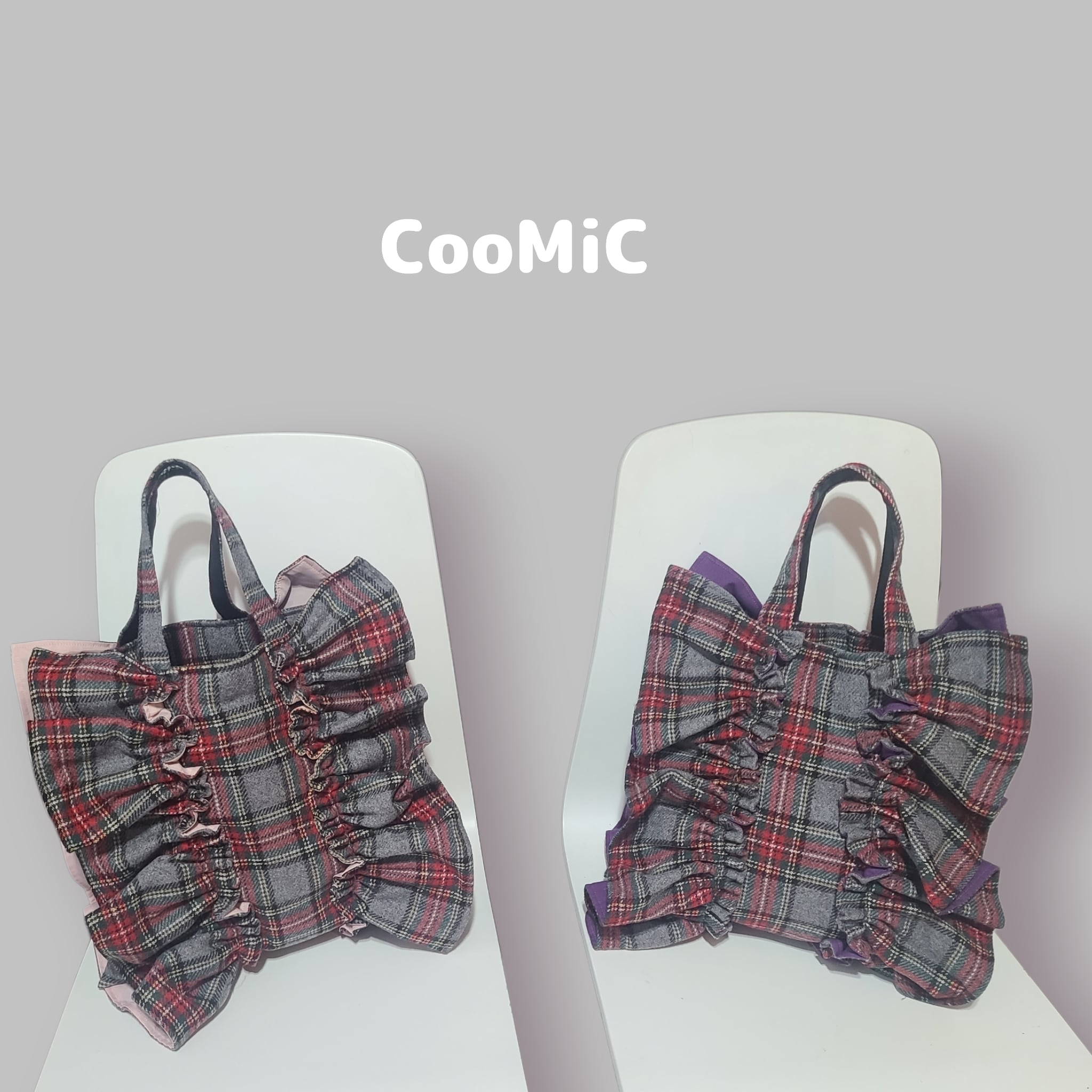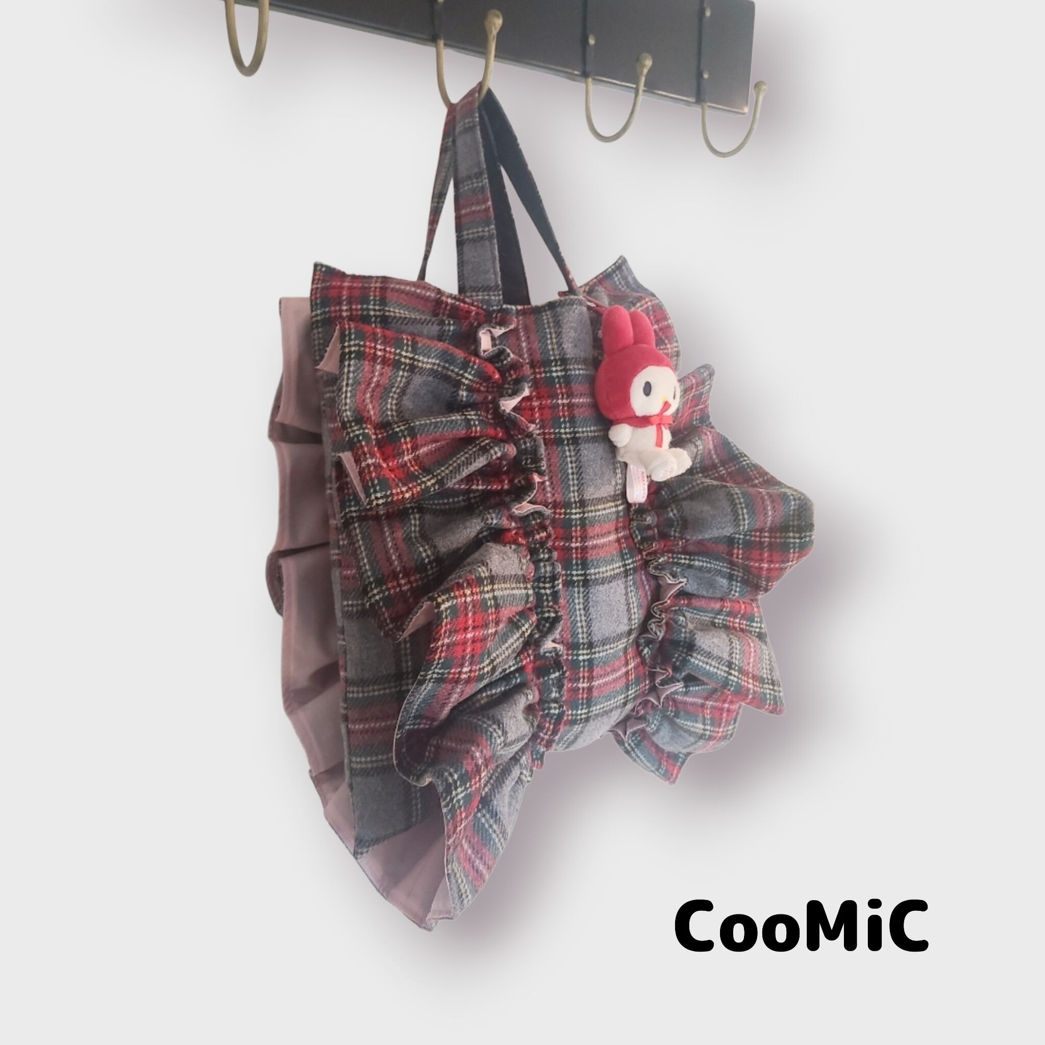 CooMiC⭐フリフリトート⭐グレータータンチェックS大